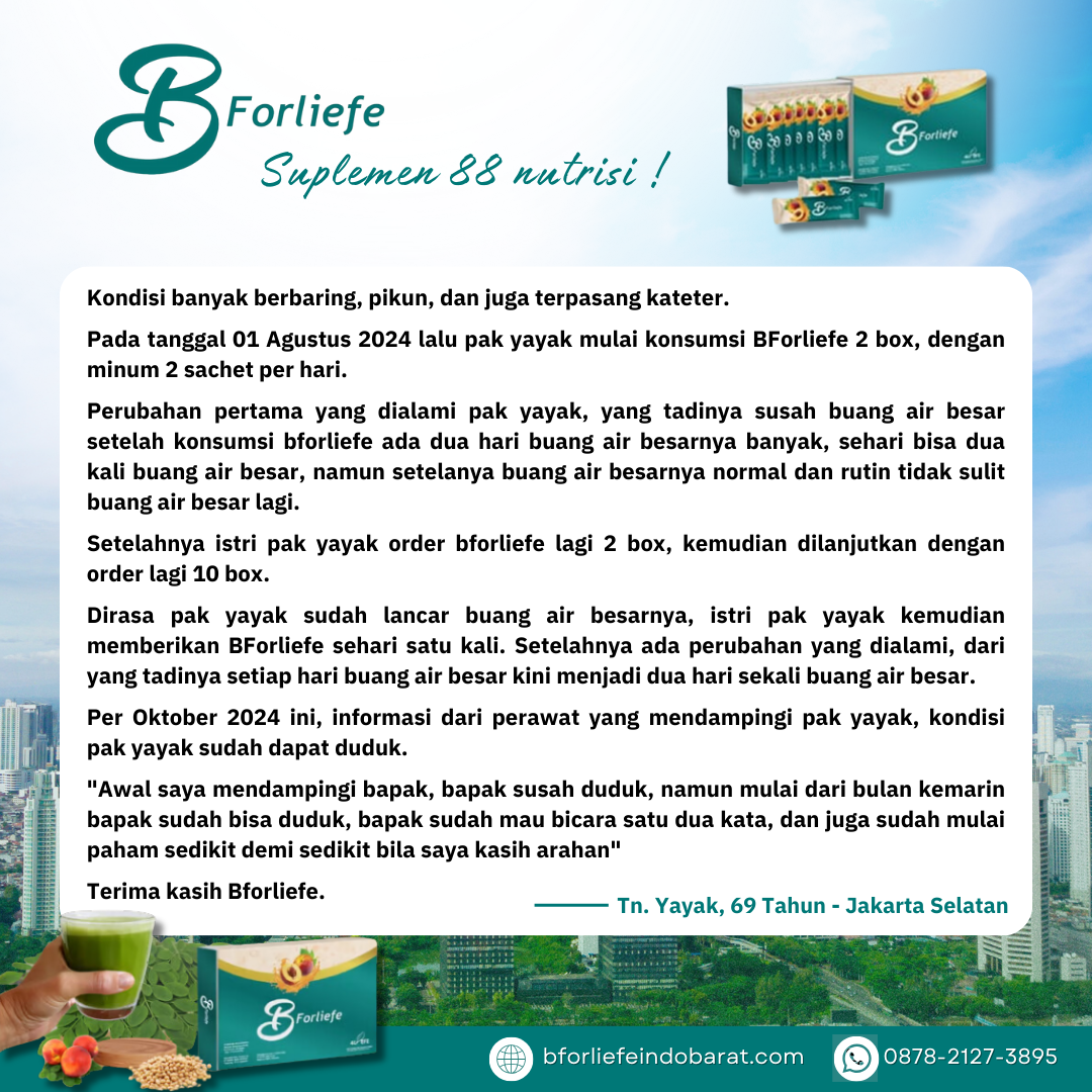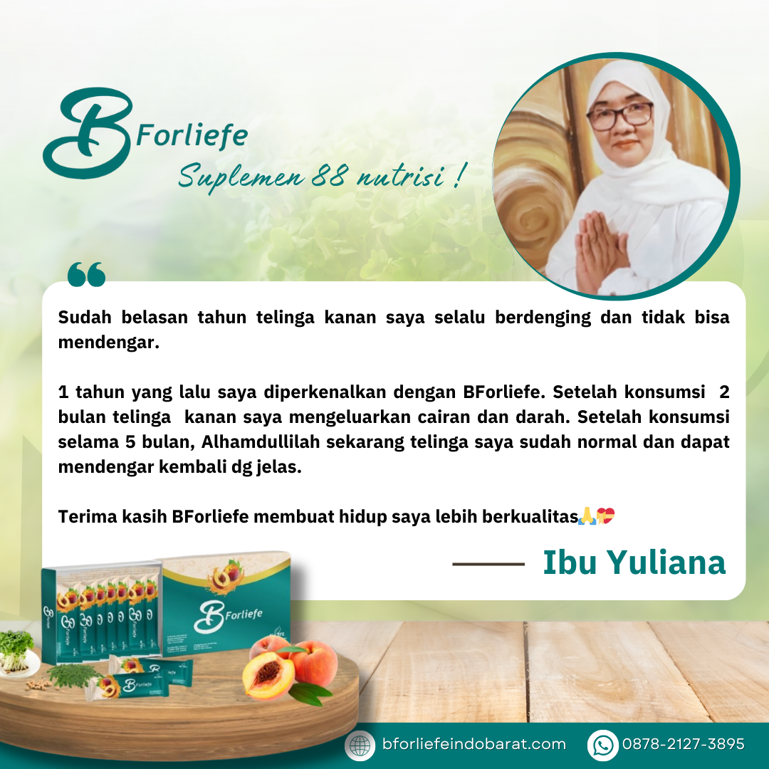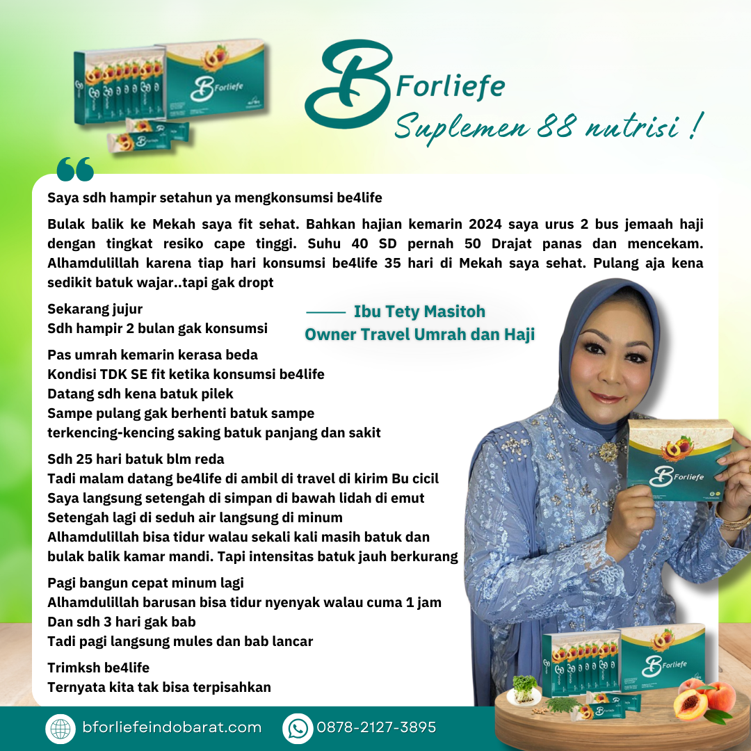 Melalui rangkaian testimoni, para konsumen berbagi pengalaman positif mereka setelah mengonsumsi BForliefe sesuai anjuran. Dari ibu rumah tangga, pekerja kantoran, hingga lansia, semuanya merasakan perubahan yang membuat hidup lebih sehat, produktif, dan bahagia.