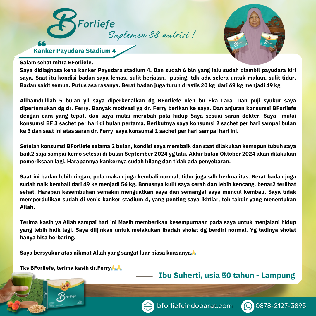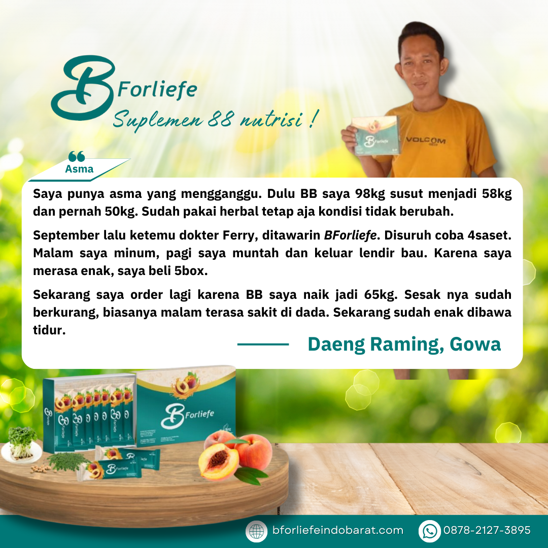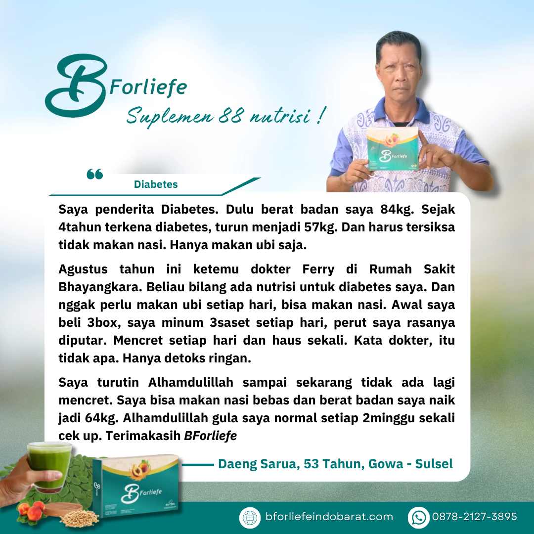 Melalui rangkaian testimoni, para konsumen berbagi pengalaman positif mereka setelah mengonsumsi BForliefe sesuai anjuran. Dari ibu rumah tangga, pekerja kantoran, hingga lansia, semuanya merasakan perubahan yang membuat hidup lebih sehat, produktif, dan bahagia.